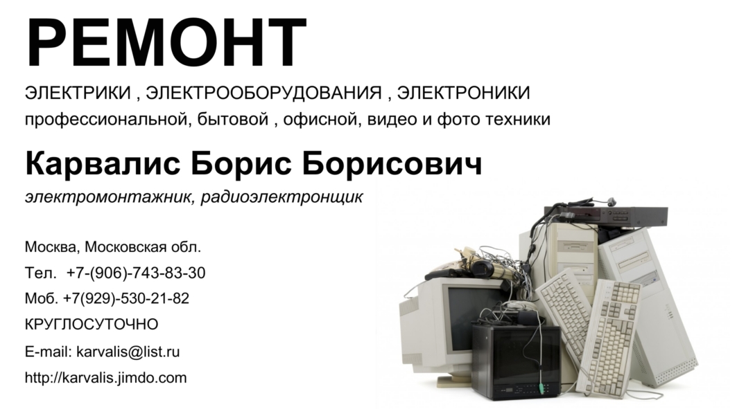ЛЮБЫЕ ВИДЫ РАБОТ. Установка и монтаж под ключ. - диагностика и устранение неполадок в электропроводке. - установка люстр, светильников , светодиодной подсветки любой сложности. - монтаж электрощитов, автоматики бесперебойного питания. - монтаж розеток, включателей и т.п. -ремонт электрооборудования любой сложности. - светодиодика (ремонт блоков питания, конверторов. - подключение любого электрооборудования.