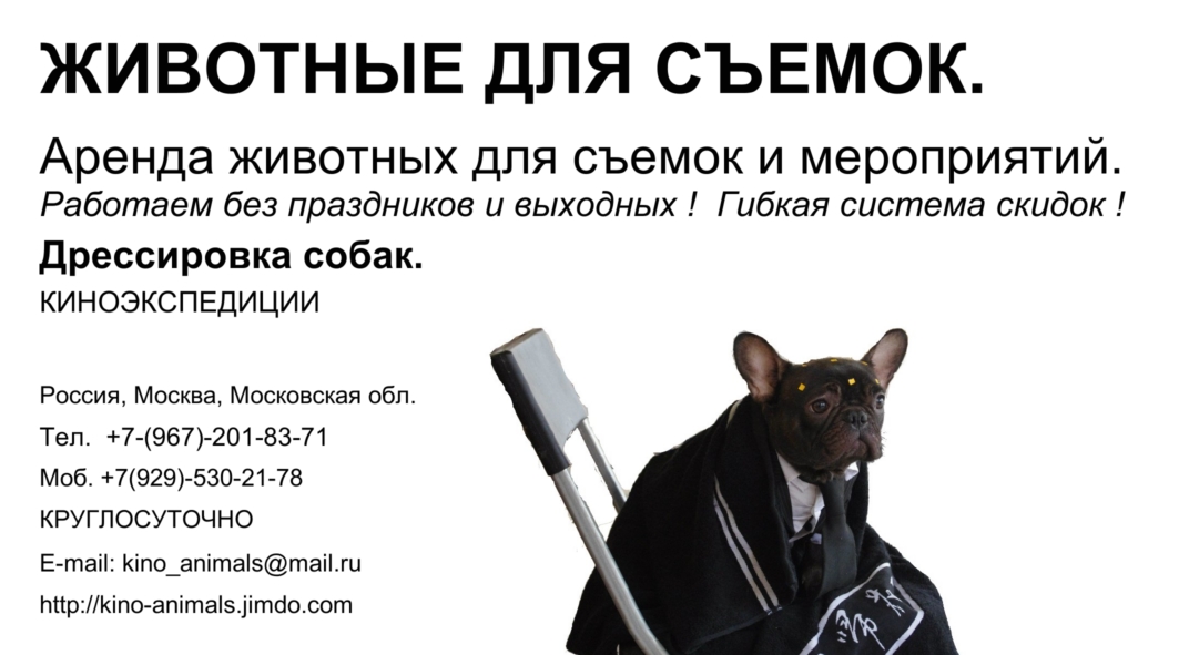________________ Партнёр : Животные для съемок и мероприятий. 8-967-201-83-71круглосуточно. http://kino-animals.jimdo.com