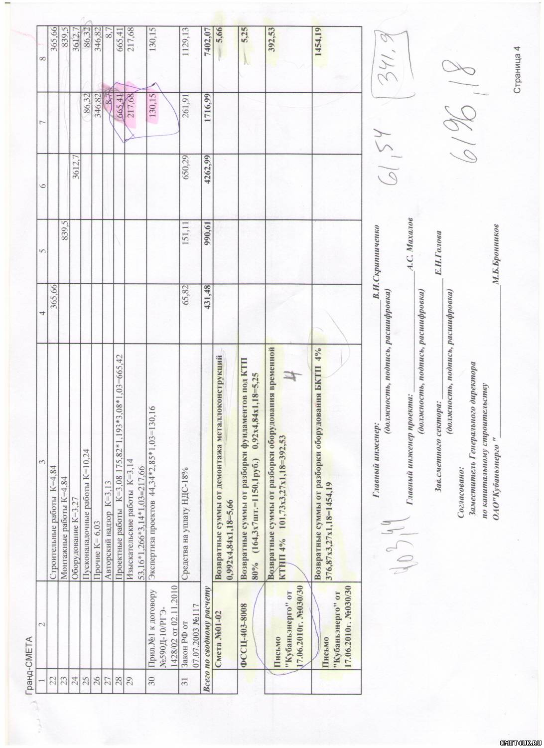 Добрый день! Организация участвует в тендере. Даны сметы и ССР. Суть работ сводится к следующим: существует КТП и БКТП, их демонтируют, на их место ставят временное КТП и постоянное БКТП новые. Сложно разобраться с возвратными суммами. Все оборудование поставляем мы. В написано, что взимается (или отдается) 4 процента в год, рассчитана какая-то странная норма (как я понимаю, износа) и выведена сумма за вычетом 4% в месяц. Однако, при расчете конечной стоимости лота, сумма по ССР и по лоту не совпадает (проектные и изыск работы делают они, я их вычитаю). Помогите, пожалуйста, разобраться. Почему такая сумма возвратных. ах, да, пока куда ни обращалась за письмом кубаньэнерго (указано в обосновании), его нигде нет. Спасибо большое за помощь