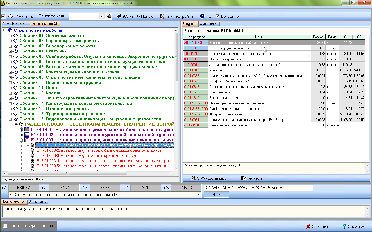 стоимость унитазов по коду 300-9400 Санитарные приборы уже учтена, но неясно по какой цене (вычислить можно только исключив остальные ресурсы расценки с ценами)