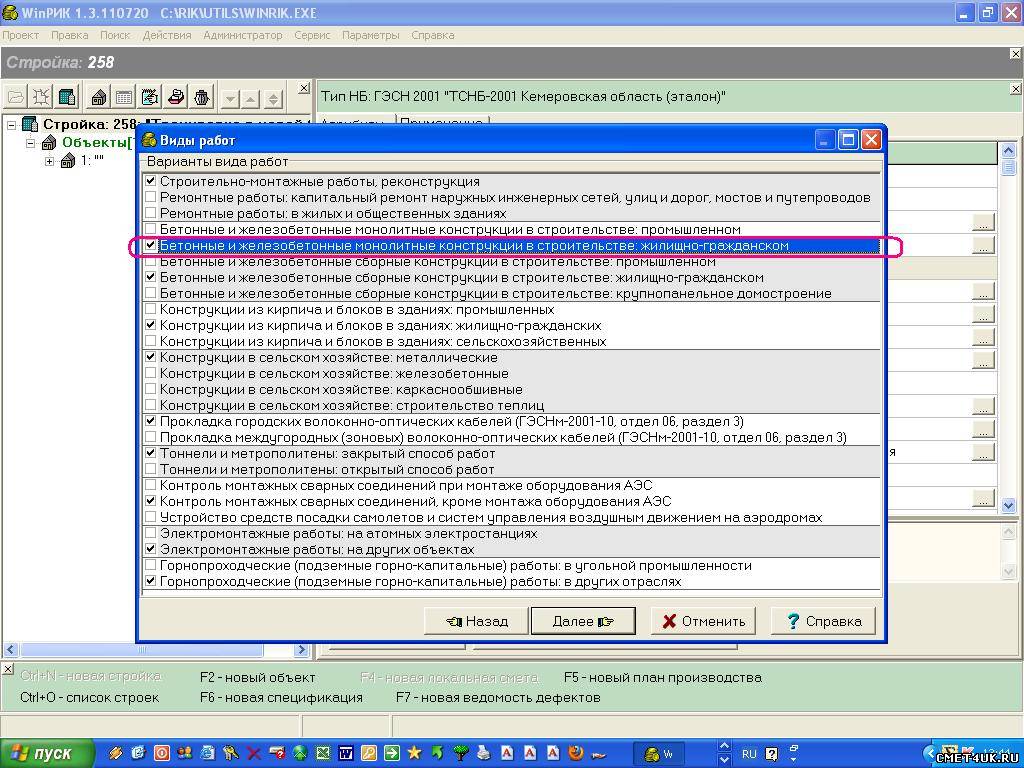 в Гранд-смете варианты видов работ уже заданы разработчиками