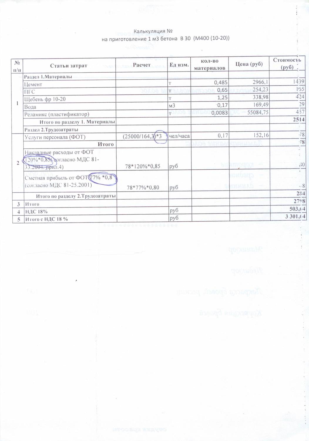 Примерная калькуляция у меня есть, меня интересует значения НР и СП при приготовлении бетона и изготовление жб изделий в ЦЕХУ, так как там (в примерной калькуляции) эти значения взяты из приложения 4 МДС 81-33.2004 и МДС81-25.2001, что я считаю не правильными!