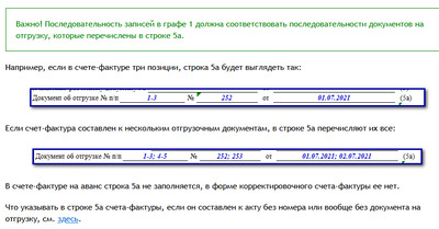 в строке 5а счета-фактуры указываются номер и датасоставления документа об отгрузке товаров (о выполнении работ, об оказанииуслуг), о передаче имущественных прав, соответствующего порядковому номеру (порядковым номерам) записи в счете-фактуре.