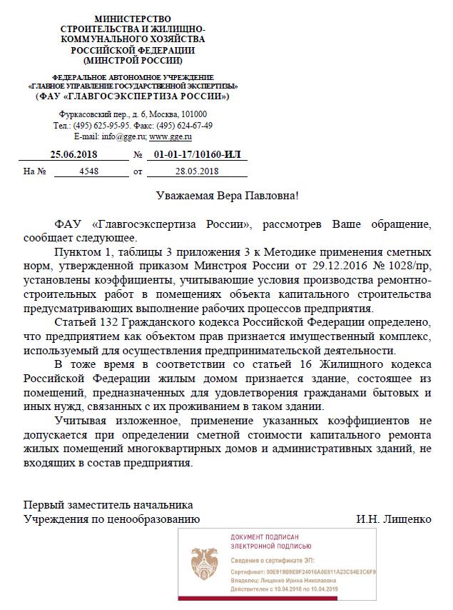 Проверяющая организация (бюджетная) сообщила, что есть письмо, которое сообщает о применении коэффициента на стесненность при кап. строительстве. таб. 3 п.1.2 (1,35; 1,15). Применять только при капитальном ремонте НЕ ЖИЛЫХ помещений, на ремонт жилых помещений не распространяется, или это только для определенного региона.