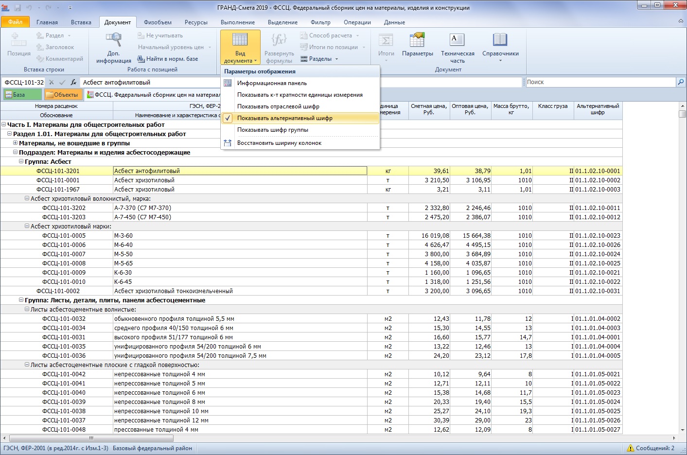 veronika-2, отображение в таблице этого столбца настраивается при помощи кнопки "Вид документа". И смотреть его содержимое лучше всё-таки не для первой группы, где собраны материалы с девятитысячными кодами, а дальше - где уже нормальные материалы начинаются.