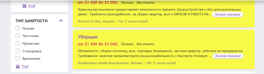Марика, ага. А кому поздно рожать, того не возьмут на работу. Вообще я заметила, что объявления о вакансиях отличаются безграмотностью. Взять хотя бы соседний пример из сообщения №54 . Слово "вил" написано с ошибкой. То есть "уборка вил" - действие по убиранию вил и метёлок в угол