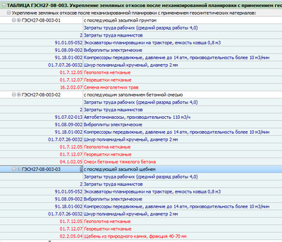 В ГЭСН 2017 года и более ранних эта работа именовалась как Укрепление земляных откосов после механизированной планировки с применением <ГЕОВЕБ>. В составе работ был указан материал ГЕОВЕБ. В таблице материалов была позиция 01.5.02.01-0012 Комплект материалов системы <ГЕОВЕБ>.