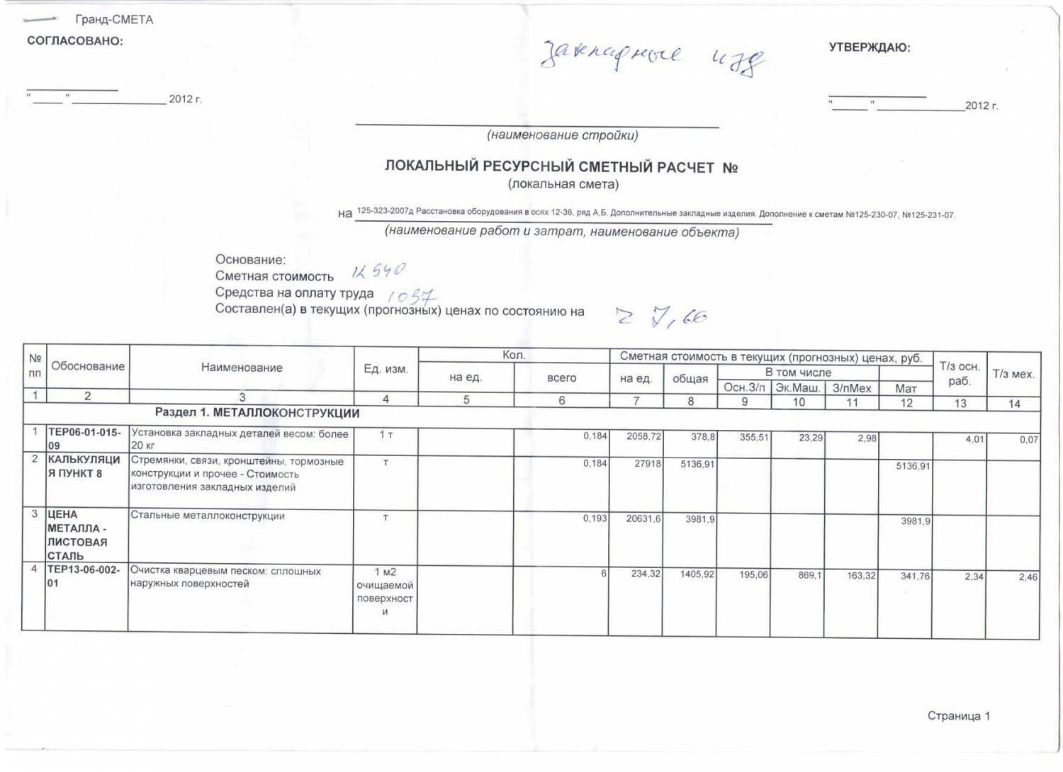 Калькуляции на металлоконструкции. Я смотрела несколько примеров калькуляции, там пишутся пункты. Я не могу найти ничего,что связанно с этими пунктами) Мне и сказали,что это из какой-то программы...