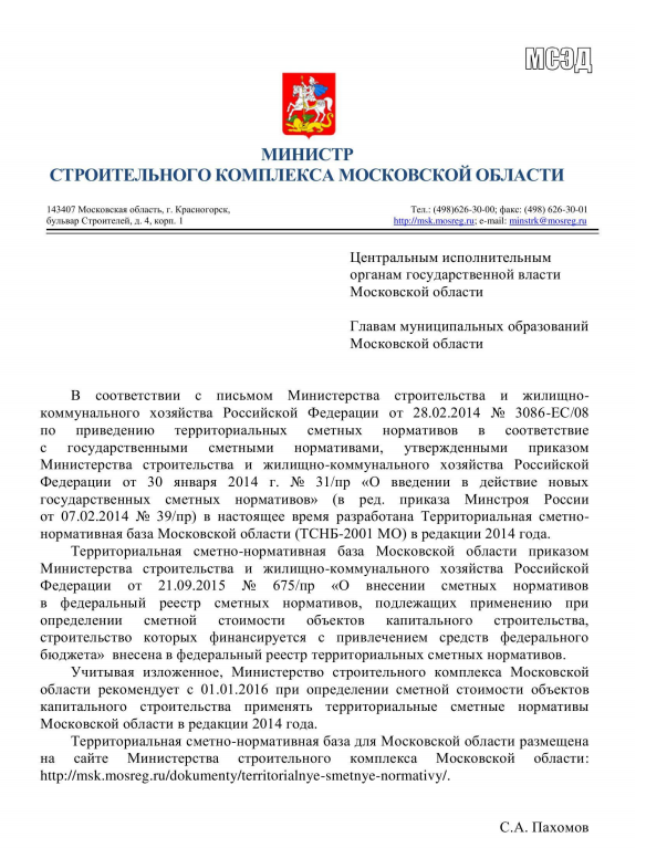 Новая ТСНБ-2001 Московской области (редакция 2014 г.) в основном приведена в соответствие с Федеральной нормативной базой ФЕР-2001 (редакция 2014 г.).