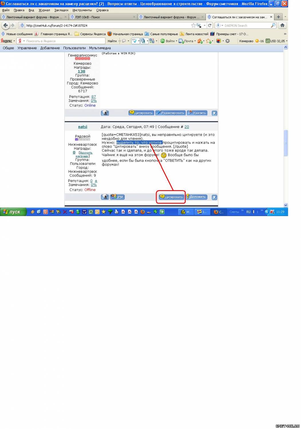 [quote=СМЕТАНКА53]natsi! Выделить мышью текст и нажать на "Цитировать"!!! Прикрепления: 9621454.jpg(115Kb)[/quote] Я так и делаю, как на прикрепленном вами файле, но не всегда срабатывает!