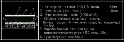 но над этой панелью идёт слой из металлического листа и клинкерная плитка