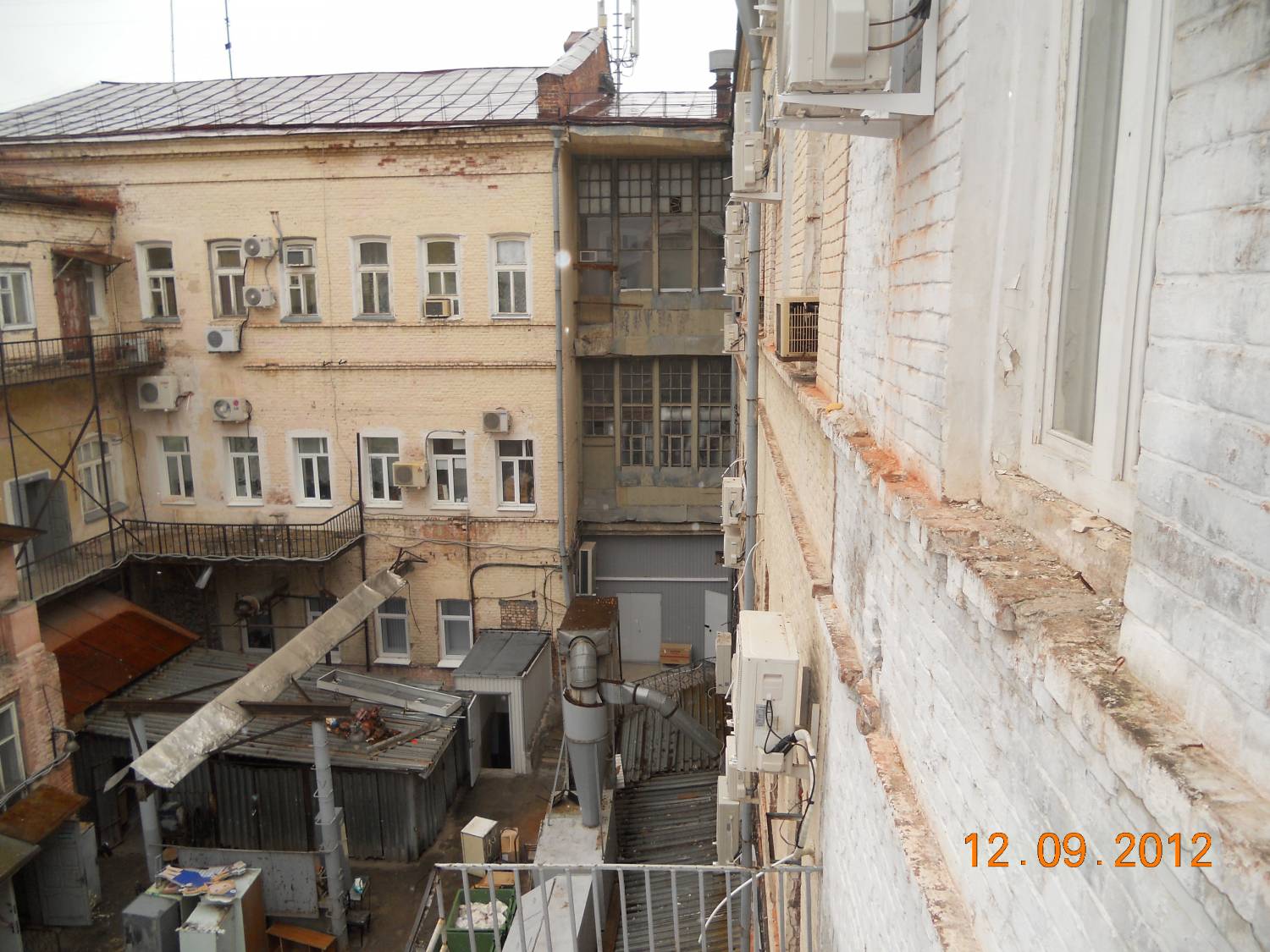 Стена от угла,крайняя правая с окнами по всей высоте этажа)