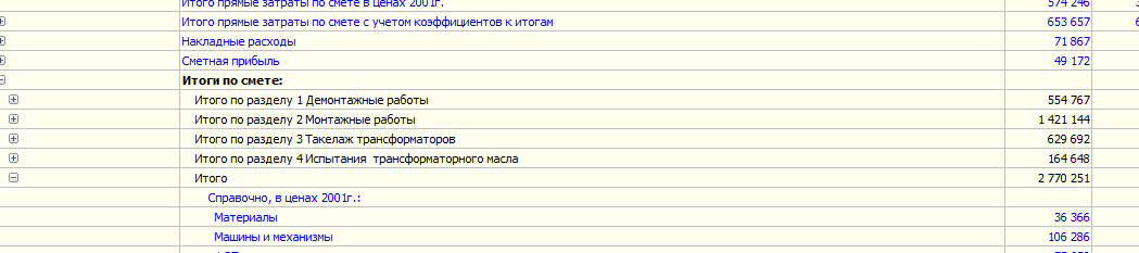Итоги по каждому разделу есть в Екселе. Нормы я не знаю,так как сметами не занимаюсь и не занимался))буду говорить сметчице))