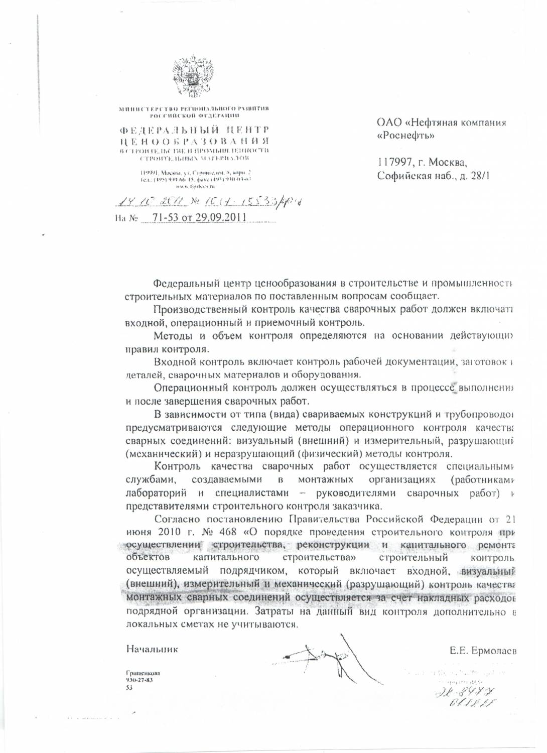 Возвращаюсь к теме визуально-измерительного контроля сварных соединений. В каком случае он берется дополнительно по ТЕРм39? А в когда входит а НР Подрядчика? На основании письма №15533/ФЦ от 14.10.2011г. Заказчик все работы по ВИК исключает из сметы.