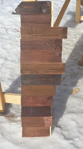 Т.к. хотим лессирующее покрытие рассматривали  -Тиккурилу Валти Колор Сатин/срок службы ок. 5лет-алкид на уайт-спирите и наши пробные выкрасы на сосне/елке: