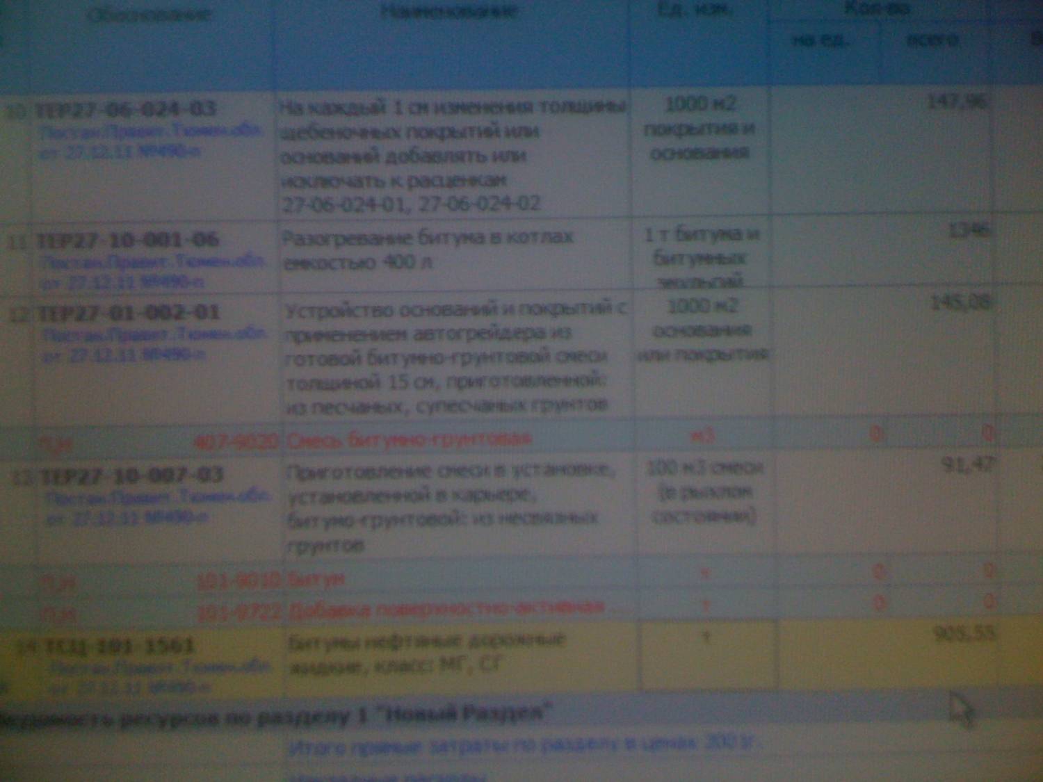 дорожник,  почему битум ноль ? (фото 1; 2) когда я забиваю