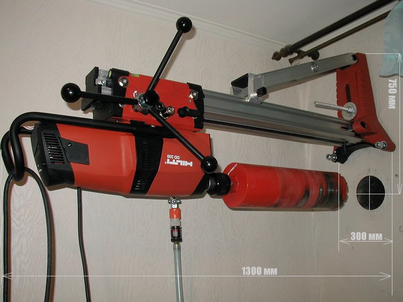 Это буровой станок Хилти, с трубчатым кольцевым алмазным сверлом, водяное охлаждение, станина с анкерным креплением. У меня такой на объекте. Это 46й сборник прямая расценка. Сверление кольцевыми алмазными сверлами по бетону. Уверен что спокойно обоснуете эту расценку! Результат работы вот во вложении. Представьте Вы бы перфоратором бурили... пол стены бы вывалилось... Тут именно сверлят, без удара. Установка поджимается сама, давление держит, не большое на поверхность.