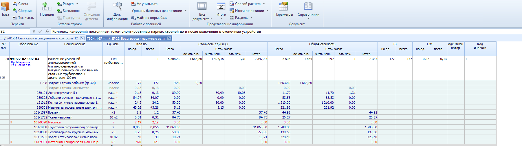 Irinka033, забил расценку в ФЕР "Нанесение усиленной антикоррозионной битумно-резиновой или битумно-полимерной изоляции на стальные трубопроводы диаметром: 100 мм" объем 1 км - расход: Мастика -2,19т Материалы гидроизоляционные - 420 м2