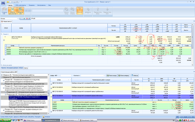 Это из другой ветки, из ГСС: Пытаюсь разобраться с расценками. Вот что у меня выходит. На скрине видно, что: 1. К из Т.ч. не применяется к оплате машинистов 2. Если здесь прописывается примененный коэф. из Т.ч., то почему на з/плату работчих он не внесен? Или это что-то другое? Непонятно... 3. Почему в сборнике (на нижней панели) расход с 2 цифрами, а в смету вносится 3??? 4. Видимо, как следствие из п.3 - если сложить все стоимости по машинам, сумма будет отличаться в раскладке и иЭММ. 5. Здесь должны быть индексы. А где тогда должны быть коэф. перехода от ФЕР к ТЕР? 6. Если изменить вид таблицы на более привычный, то можно увидеть, что применение К из Т.ч. не увеличивает трудозатраты, что принципиально неверно