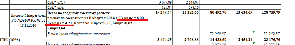 Так оно есть во 2 главе ССРСС два объекта (ВЛ - стоимостью строительно-монтажных работ 25 млн, и ПС - стоимостью строительно-монтажных работ 18 млн). И для пересчета глав 1,7,8,9 эксперт предлагает взять индекс на ВЛ исходя из стоимости СМР, но п.5 методики гласит "применяется индекс изменения сметной стоимости, рассчитываемый для основного объекта строительства, наименование которого указано в ССРСС, или индекс изменения сметной стоимости, рассчитываемый для основного объекта строительства, сметная стоимость которого в базисном уровне цен составляет наибольшую стоимость от совокупной сметной стоимости строительства в базисном уровне цен" и по моему мнению необходимо считать стоимость строительства основного объекта в целом, т.е. СМР+ОБ (с учетом оборудования стоимость ПС 58 млн, а ВЛ 26 млн) и тогда основным объектом для выявления индекса пересчета будет являться ПС. Собственно вопрос где правда то?