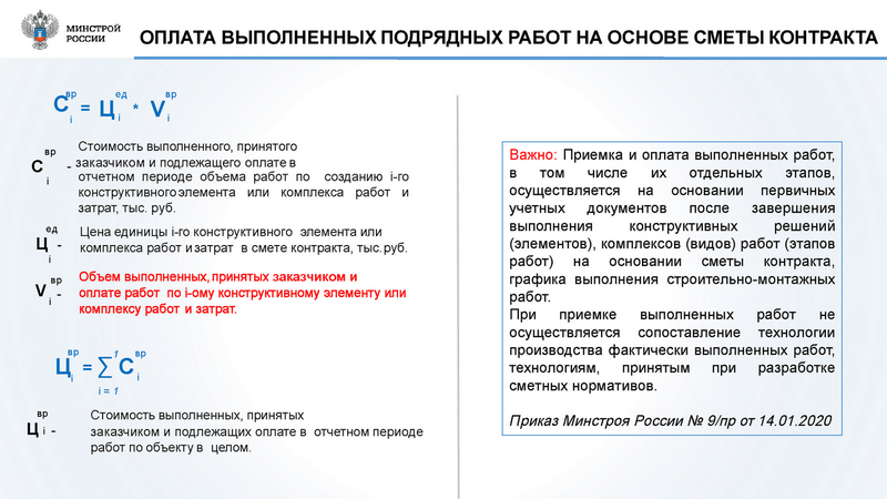 Указанная норма стала продолжением механизма «смета контракта» (приказ Минстроя России от 23.12.2019 № 841/пр), когда цена определяется за результат, который зафиксирован в заключенном государственном или муниципальном контракте, а не за процесс. Этот механизм защиты подрядчика достаточно важен при приемке заказчиком работ, а также исключает недопонимания данного процесса со стороны контролирующих органов.