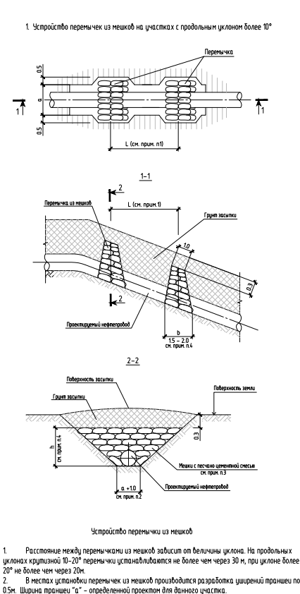 Выполняются работы по обустройству противоэрозионных перемычек на трубопроводе согласно чертежа (приложен к вопросу). Мешки заполняются в цеху ПЦС до 40 кг и транспортируются на строительную площадку, где разгружаются и вручную укладываются вокруг трубопровода в траншее. Подскажите пожалуйста, какие расценки к этому виду работ применить?