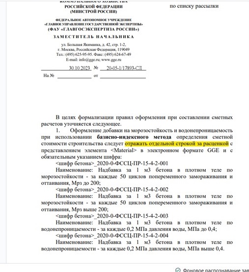 Здравствуйте Помогите пожалуйста разобраться в оформление добавки на морозостойкость и водонепроницаемость по письму ГГЭ № 20-05-1/17893-СЛ от 30.10.2023