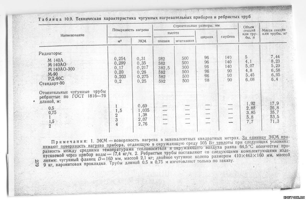 М-140 = 0,314м2 на секцию, М-150 -0,269м2 на секцию
