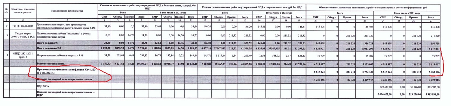Новоуренгойский район" (для обоих титулов)?Вопрос №2: для пересчета строительно-монтажных работ в ССР втекущий уровень цен мы принимаем ежеквартальные индексы Минстроя для ОСНБЖ по