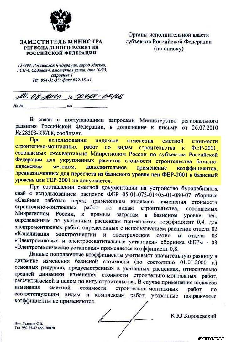 ceyler, пользоваться ФЕРами без поправочных коэффициентов??? Кому и когда пришло такое письмо? Приведите цитату, если нетрудно.