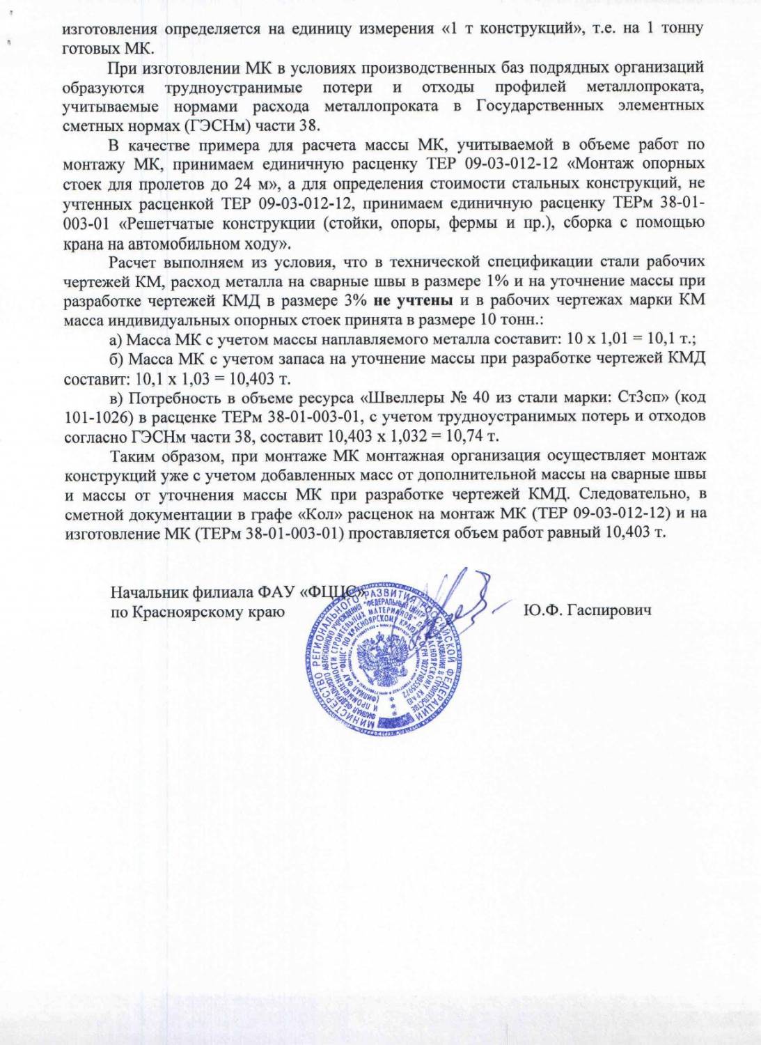 В ответе к вопросу №1.1.25 так же утверждается ,что "Уточнённая масса конструкций, изготавливаемых по индивидуальным проектам, с учётом добавок (1% и 3%) в сметах принимается как для определения стоимости самих конструкций, так и для определения стоимости монтажа конструкций". Но в последнем абзаце идёт противоречивое утверждение, что "При использовании для учёта расхода металлопроката ведомственных норм или ГЭСНм (ФЕРм)-2001-38 добавки в 1% и 3% по Технической части Сборника ГЭСН-2001-09 на переход от чертежей КМ к чертежам КМД не учитываются".
