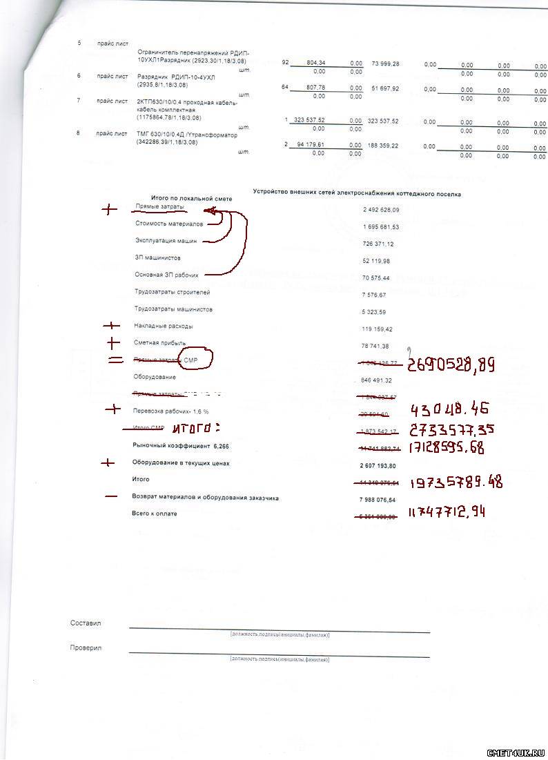 Извините уж за непонятное изложение, к сожалению я не сметчик, а надо разобраться в вопросе, прилкрепляю скан последнего листа сметы, посмотрите пожалуйста!