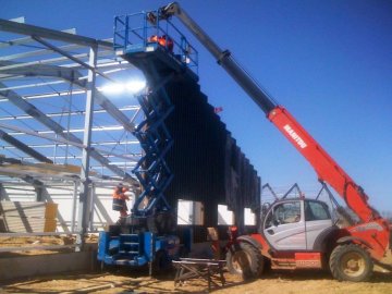 т.е. сначала поставили леса, а потом (интересно как) сквозь них пропихнули к стене сэндвич-панели... краном наверное... – волшебники... tongue