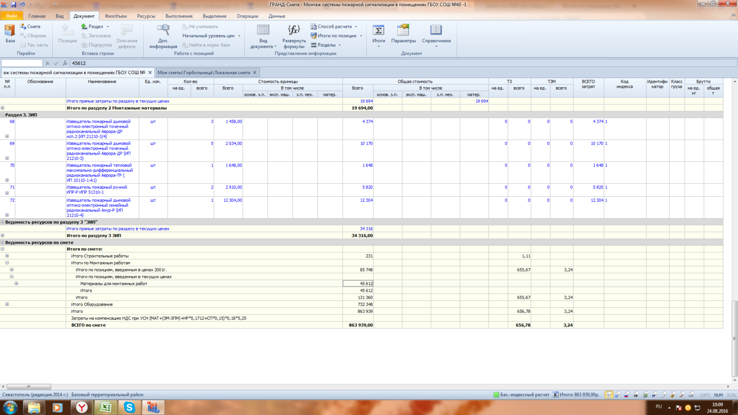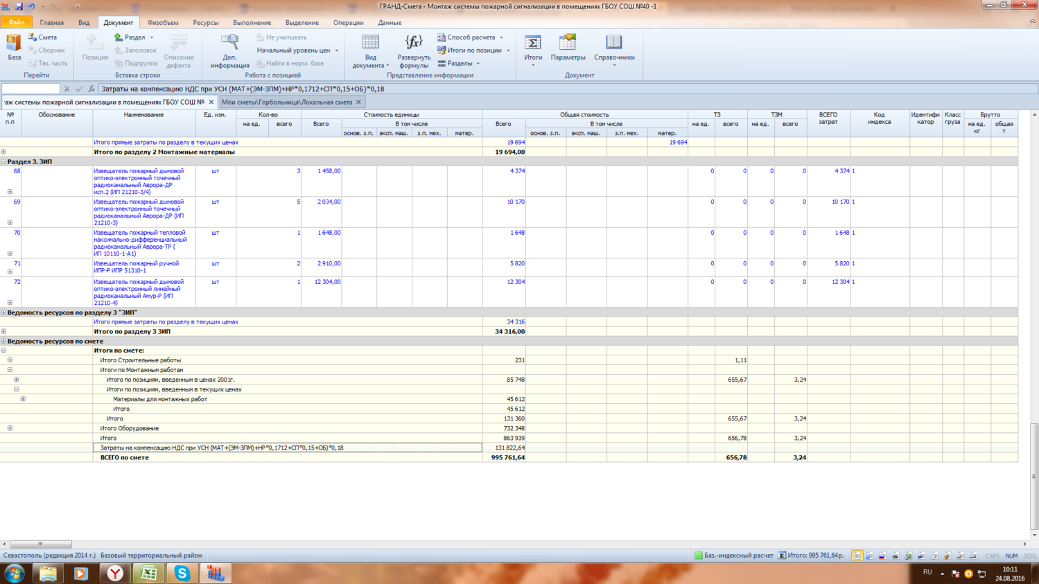 и материалы и оборудование должны быть в базисных ценах.