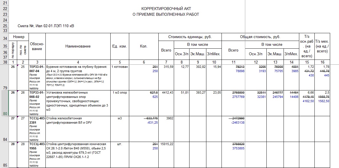 в колонке Общая стоимость всего дублируется стоимость единицы, а сама общая стоимость всего уехала во ВСЕГО ЗАТРАТ после ТЗ и шифра индексов