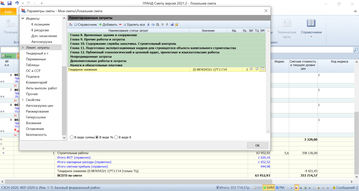 если ввести тендерный коэффициент «старым казачьим способом» – то есть, не в виде отдельного параметра, а строкой в лимитированных затратах (причём в последнюю главу, которая для налогов предназначена), то округление до рублей не осуществляется.