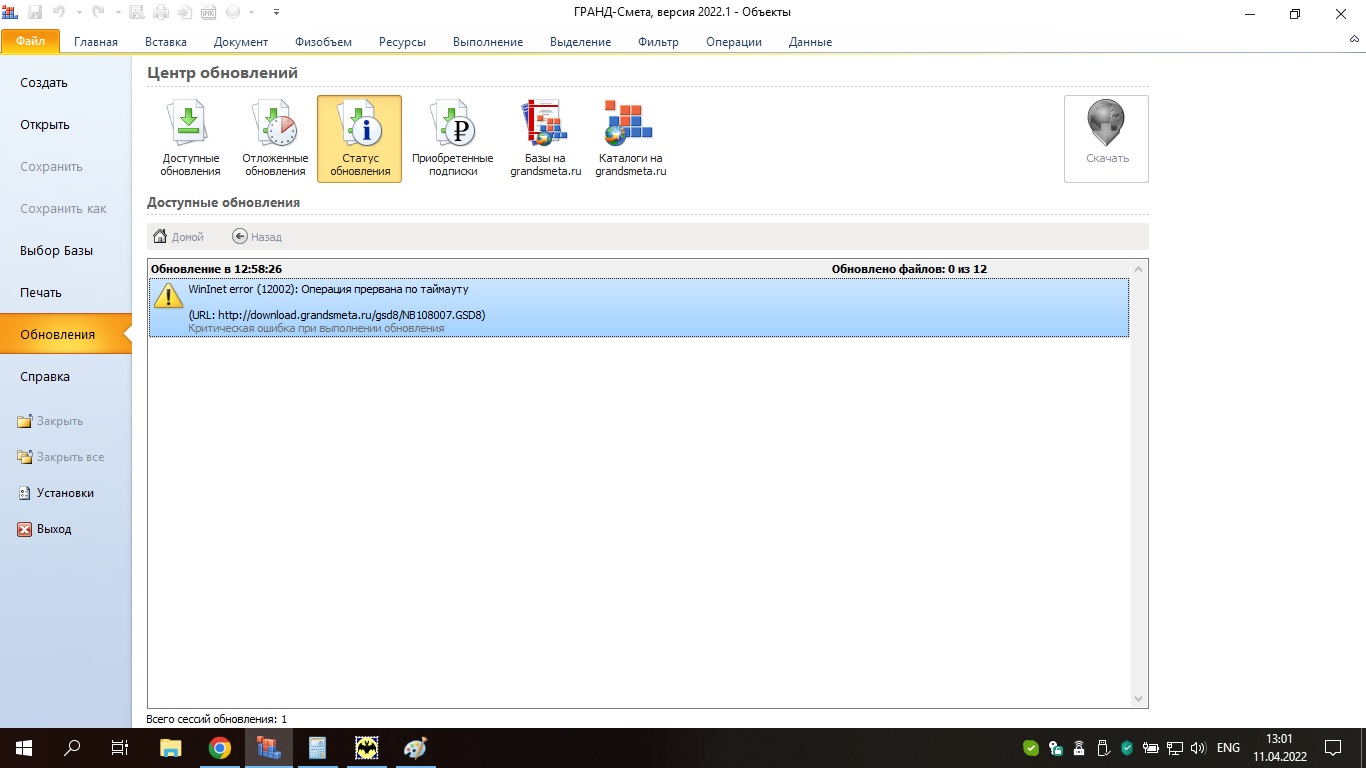 В который раз скачивание 1,64 Гб обновлений . Минус час рабочего времени пока это всё скачается т.к. во время скачивания работать в гранде нельзя. Прошу всё же рассмотреть возможность сделать чтоб можно было работать в программе во время скачивания обновлений. P.s.: сидел качал три часа, не работал , итог на скрине ( качать придётся снова p.s.s: в итоге я додумался вручную скачать базы с сайта и они скачались довольно быстро (не три часа как через гранд-смету).