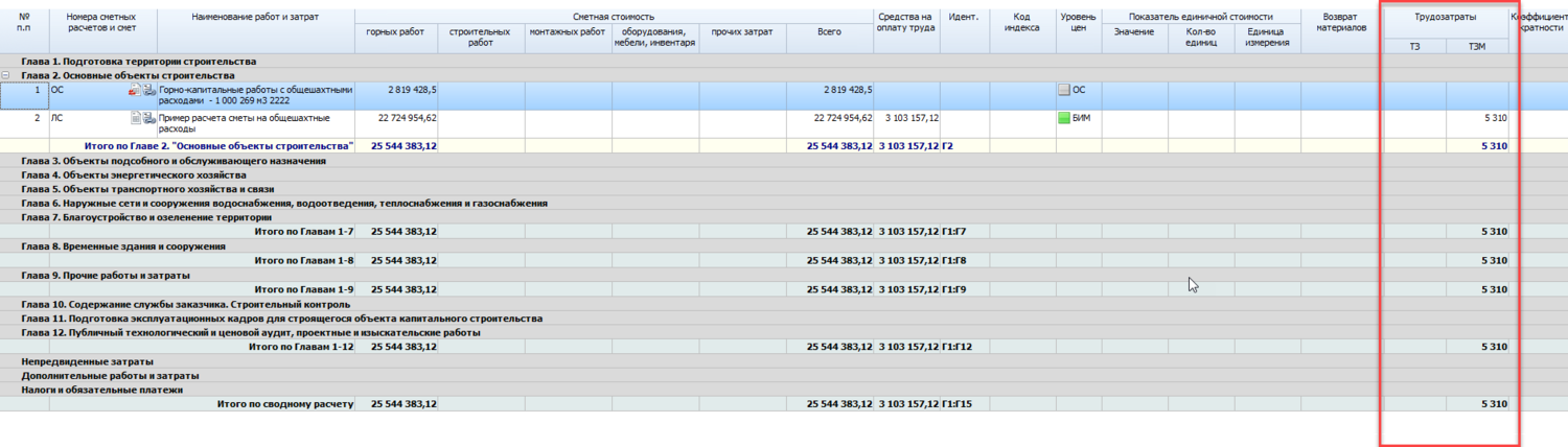 Требуется в объектных и сводном расчете в программе видеть трудозатраты чел. час .