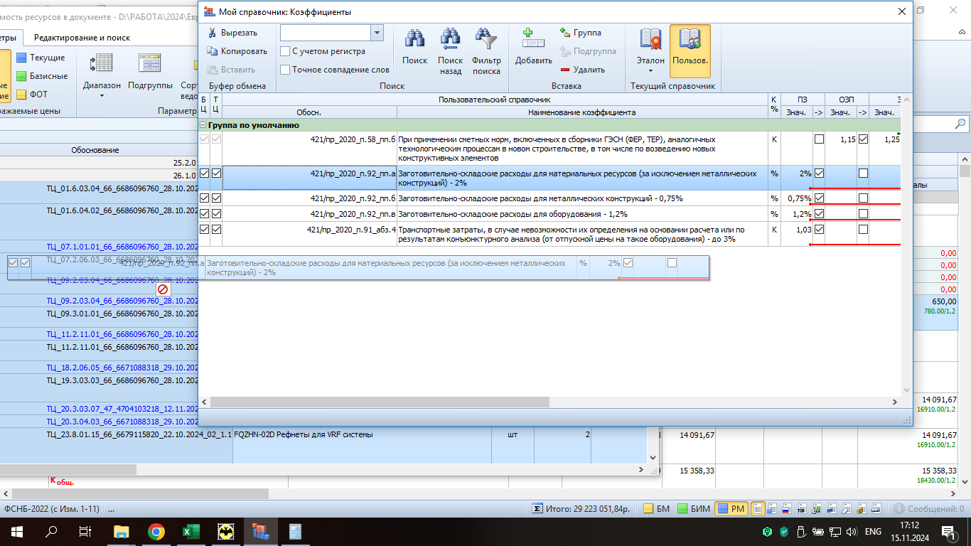 Сделайте, пожалуйста, чтобы при пересчёте сметы (смене региона) непопулярные справочники видов работ (отраслевые и не действующие) по умолчанию были скрыты под спойлер. Т.к. окно обновления позиций открывается маленькое и сразу не видно "справочник НР и СП", а также "справочник к-в к НР и СП"