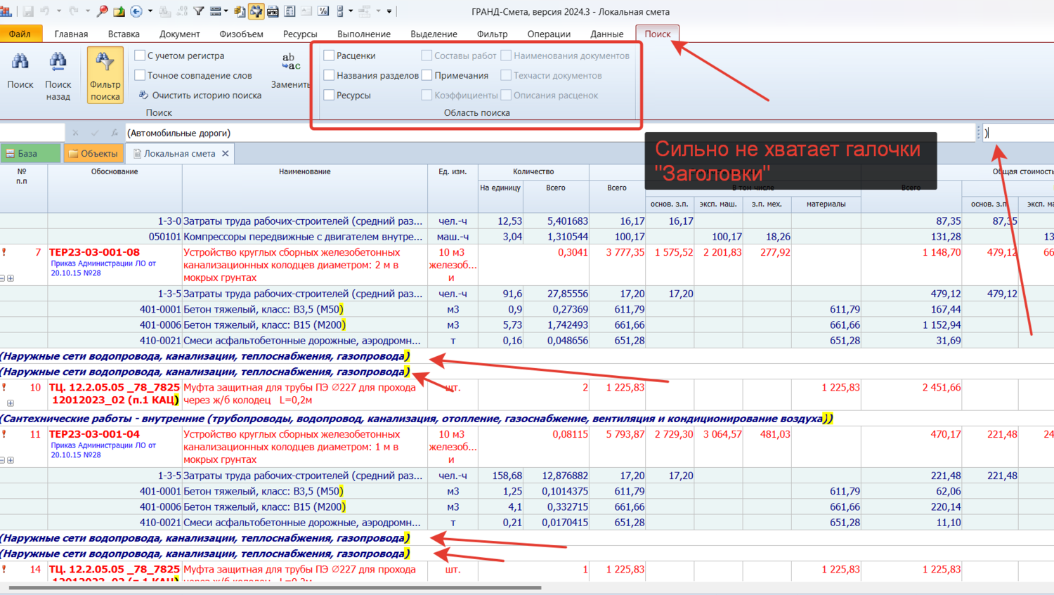 Здравствуйте! Сильно не хватает в фильтрах поиска галочки "Заголовки" Очень нужен при импорте данных из экселя, чтобы удалять "мусорные" заголовки и вычищать смету