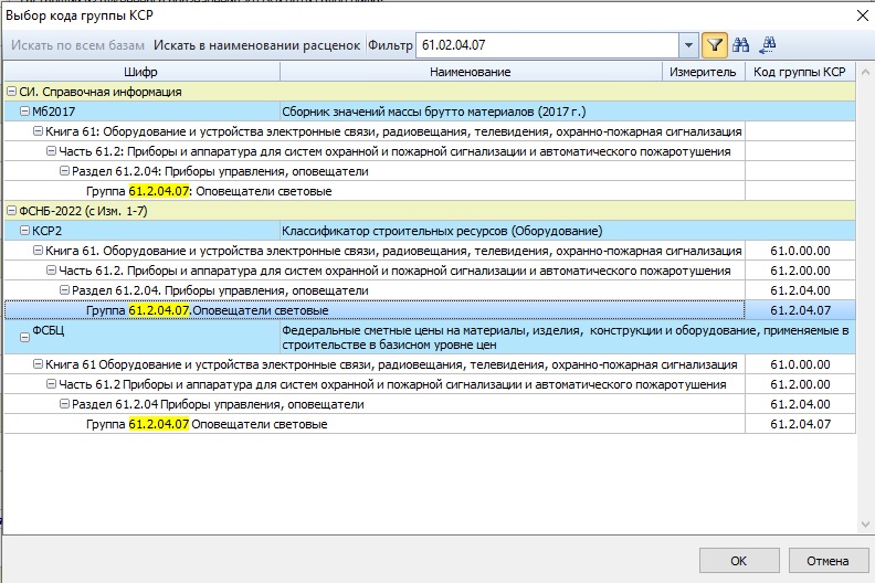 При формировании шифра строительного ресурса в КА, хотелось бы возможность включать фильтр по поиску только конкретно КСР без учета МБ и ФСБЦ