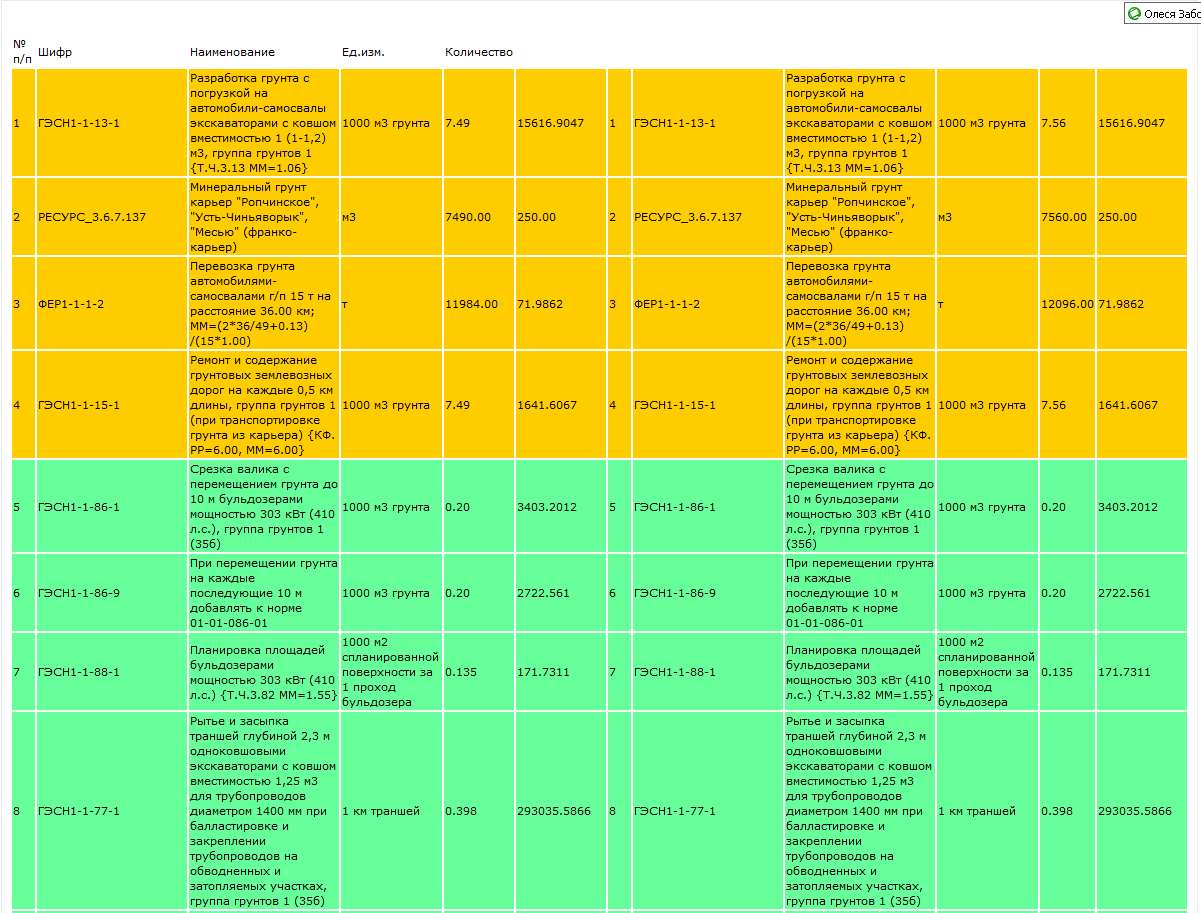 Хотелось бы функцию сравнения двух смет. Проверяю смету, делаю замечания. Присылают исправленный вариант (часто на ту же сумму)