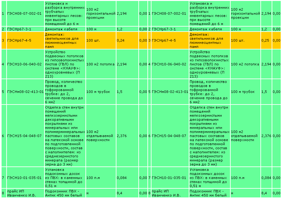 Накидал расценки, через одну внес корректировки. Программа выделила только одну. И результат в не очень удобном виде, ни сохранить, ни распечатать. Если бы программу можно было скачать и работать на ПК, проще было бы, а то к инету привязка