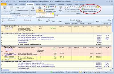 В смету в несколько разделов внесены материалы как по ТСЦ (ФССЦ), так и по прайсам (калькуляция цены) Кабельная продукция Светильники Выключатели и т.д. Необходимо отфильтровать только данные материалы как показано в сообщении 417. Чтобы так отфильтровать, необходимо их выделить как показано в сообщении 416.