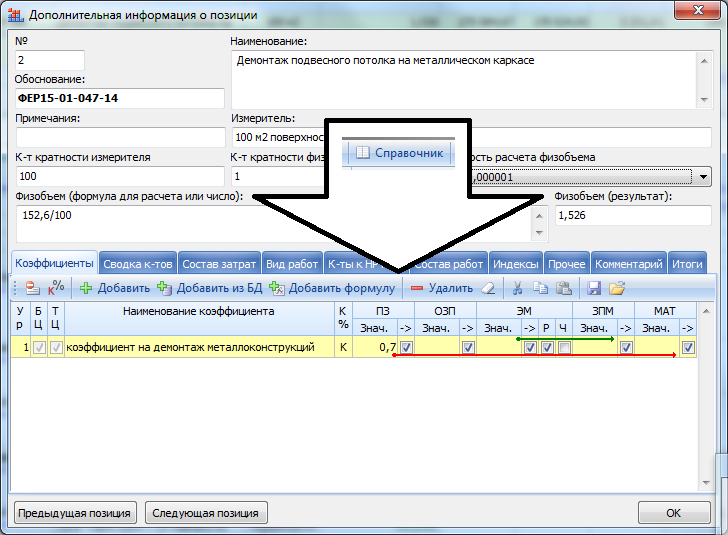 а зачем? на мат должен быть 0 при демонтаже. и в справочнике данный коэф есть. или речь идет о стандартном наборе галочек? демонтаж (по видам), стесненность и т.д.?