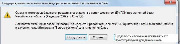 Предлагаю добавить вот такую  кнопку. Бывает приходится редактировать смету, базы которой нет. Постоянно это окно вылазит.