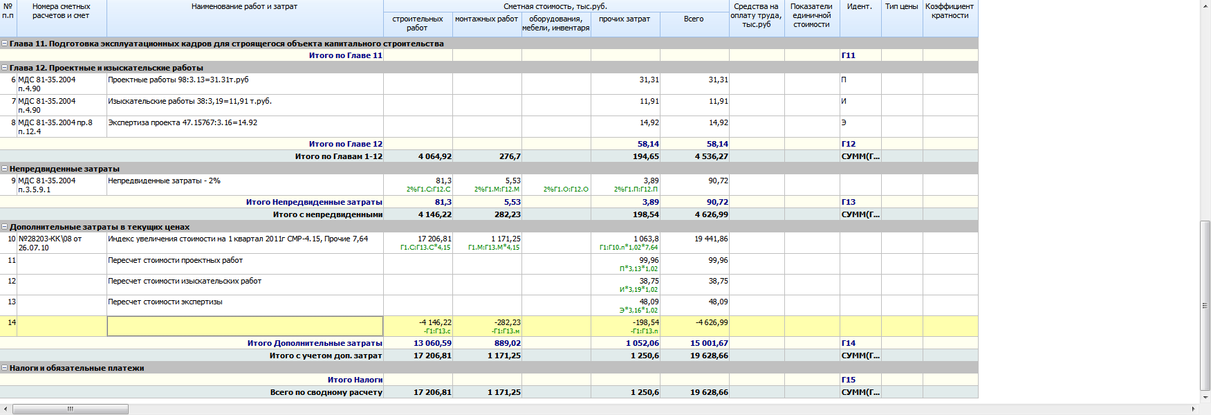 mtsn, ну тогда функция "перевод цен" вообще не нужна, потому что в любом сводном сметном расчете присутствует несколько видов прочих работ и затрат (как минимум - ПИР и экспертиза имеют разные индексы, а еще существуют прочие 9-й главы со своим индексом)