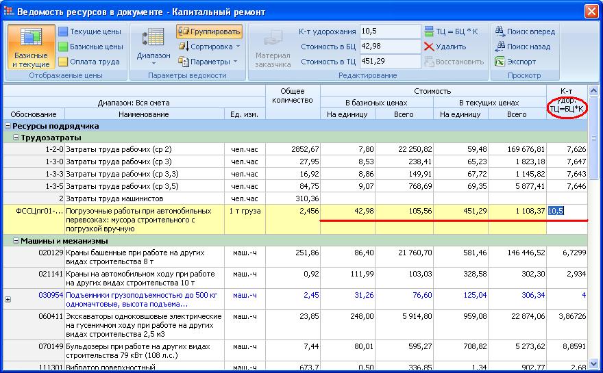 Если речь идет о том, что вся смета считается ресурсным методом, но при этом стоимость погрузки нужно получить от базисных цен через индекс, то вы можете спокойно выполнить такой пересчет прямо в ведомости ресурсов – просто ставите нужный индекс в последнюю колонку…