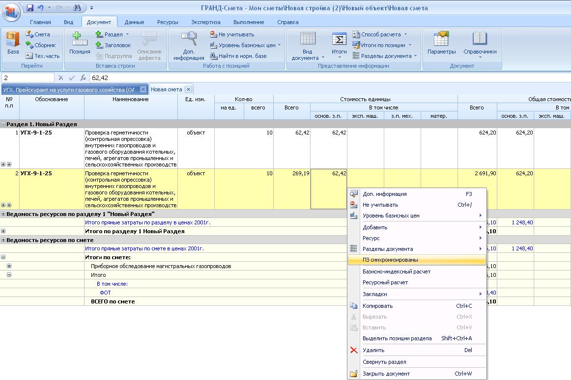 Moranna, выделите все позиции, снимайте галку "ПЗ синхронизированы" и пересчитайте смету.