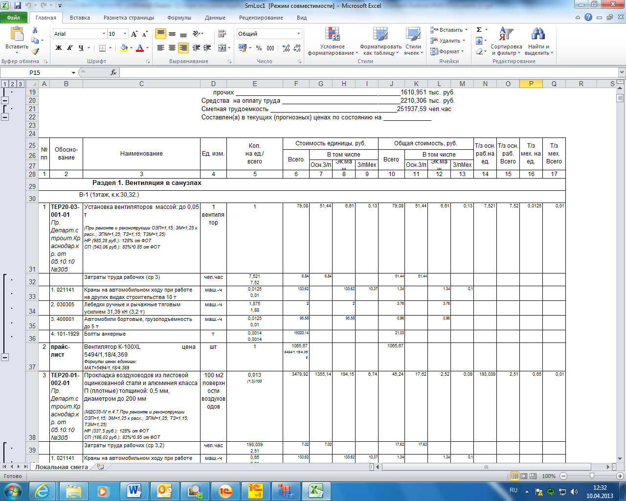Добавлено (10.04.2013, 12:54) --------------------------------------------- в икселе не показывает умножение на 0.9. хотя в смете это есть